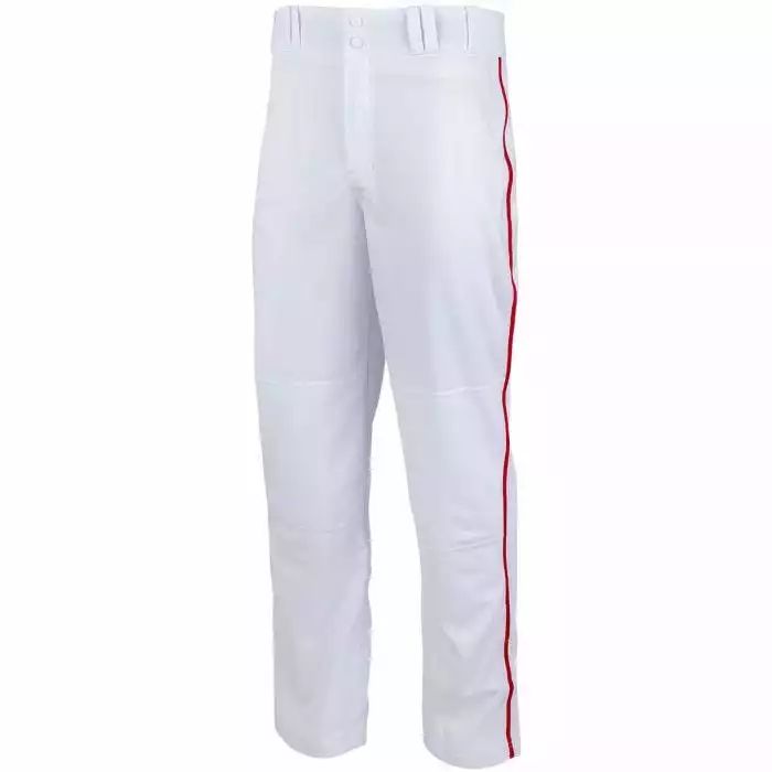 The Champro Triple Crown Open Bottom Piped Adult Pants will make you feel like a Major Leaguer. These baseball pants are made from durable double knit polyester and a hook-and-loop feature at the leg openings allow you to customize the length to fit you perfectly. Double layer knees provide additional abrasion protection when you slide.