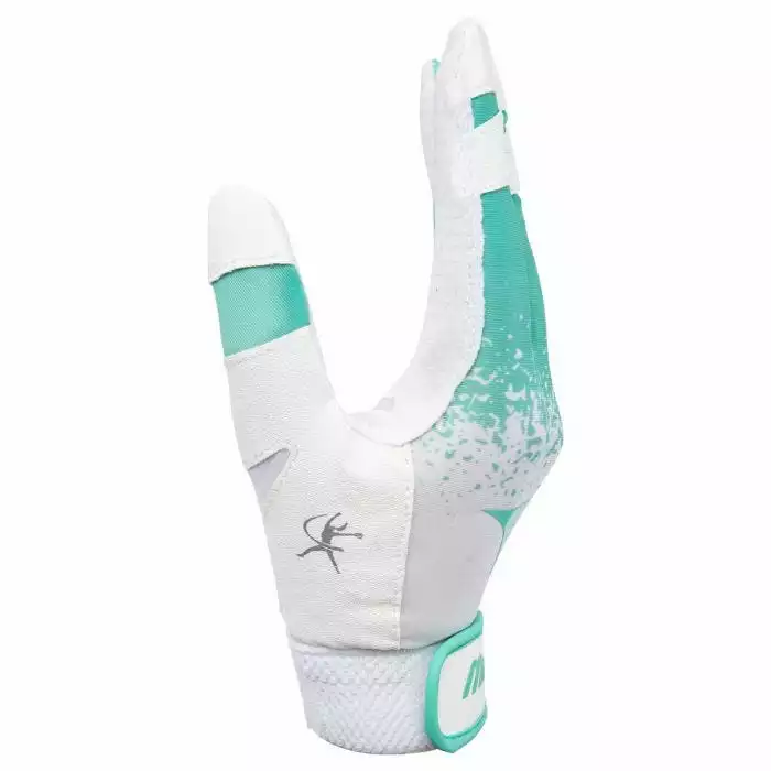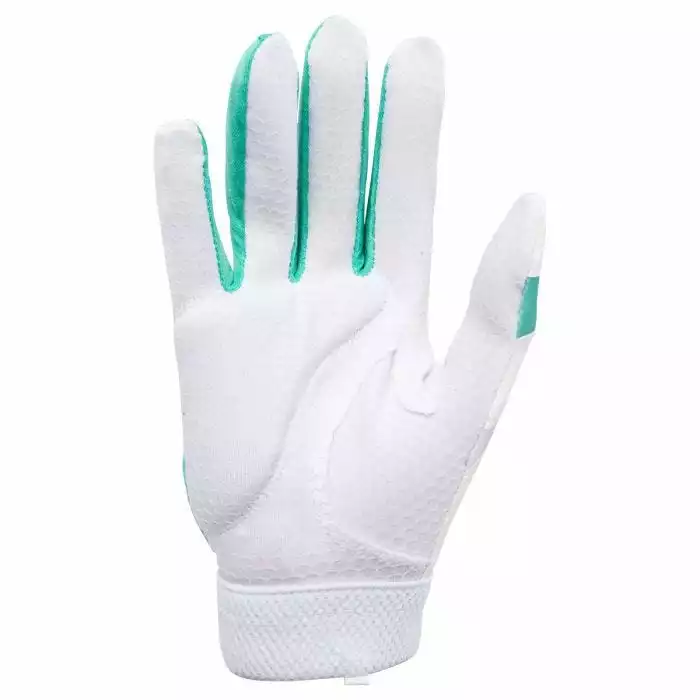Created with direct input from softball legend Jennie Finch, the Finch Women’s Softball Batting Glove is designed with the softball player’s specific needs in focus. Features a padded nonslip Mizuno ShockPalm to absorb vibration for less sting and better comfort. Made with an FlexMesh back designed to increase flexibility and breathability.